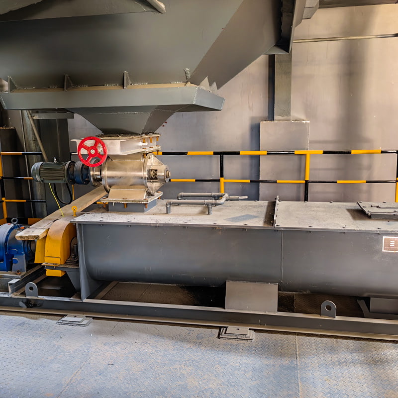 READ MORELe mélangeur humidificateur de poussière à double arbre utilise un réducteur à moulinet cycloïdal pour une rotation en douceur et un faible bruit. Le mélangeur est doté d'une alimentation par le haut et d'une décharge par le bas, ce qui donne une structure profilée. Des joints étanches entre toutes les surfaces de contact garantissent un fonctionnement fluide. Le mélangeur est doté d'un système d'humidification de l'eau pour assurer une application uniforme de l'eau, avec une alimentation en eau réglable pour répondre à la demande. Une pompe à huile manuelle fournit de manière centralisée de la graisse lubrifiante aux quatre roulements d'entraînement, ce qui rend le mélangeur facile à utiliser et à entretenir, efficace et rapide. Le mélangeur humidificateur de poussière à double arbre est un appareil très efficace pour agiter et mélanger des matériaux en poudre par pulvérisation d'eau.
